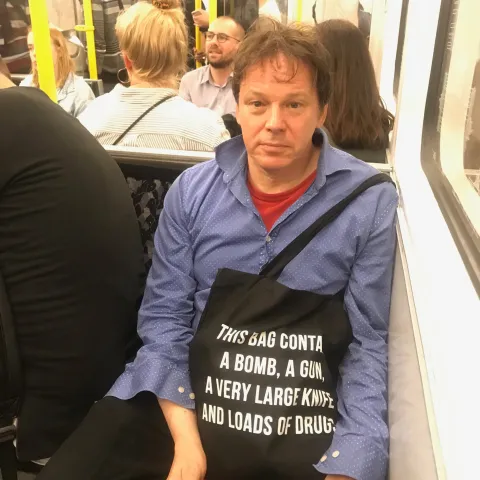 Who needs all these goddamn words, mind games, lectures, in order to understand that wealthy people are essentially payed to hide how useless they are from society? How cringey is it that he rode around on a subway with a bag that said he might have bombs, guns, and drugs on it? How did he keep his job? Is this his ideas of making fun of "the normies", hence "making a statement" as "an activist"? Clearly a rebel with a very patented cause.