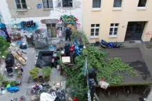 For us, it is still a defensive fight that the power can win with its army of mercenaries. But the dissatisfaction will grow and the smell of burnt plastic will spread all over Berlin. Our solidarity and love to all fighting people of the former Liebig34, Rigaer94 and all other occupied houses!