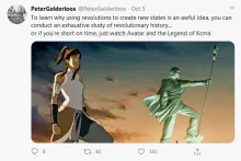 Zaheer in The Legend of Korra (voiced by punk rock legend Henry Rollins) who seeks to bring down all governments, prompting the protagonist Korra at one point: “The idea of having nations and governments is as foolish as keeping the human and spirit realms separate [a reference to a previous season’s plot]. You’ve had to deal with a moronic president and a tyrannical queen. Don’t you think the world would be better off if leaders like them were eliminated?”